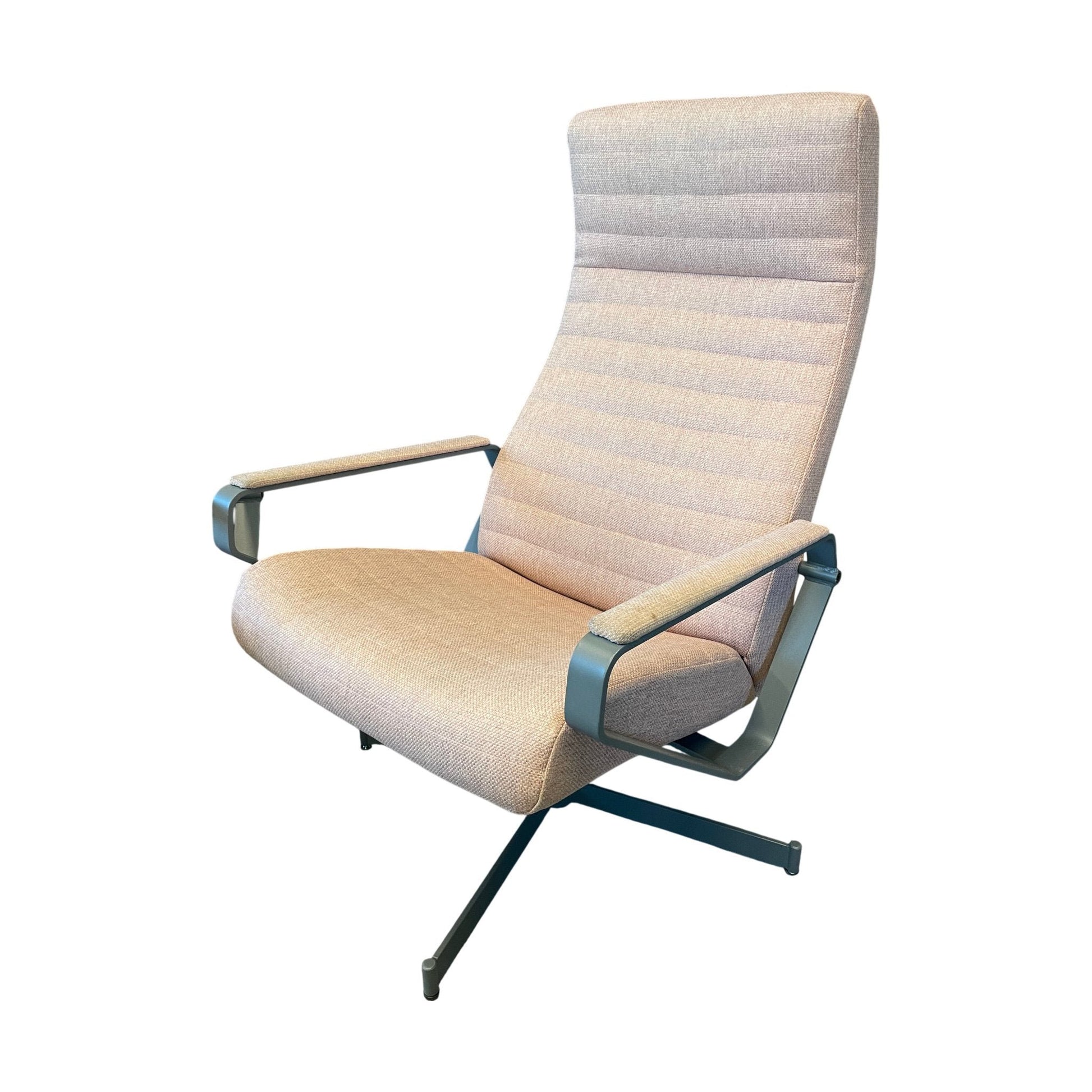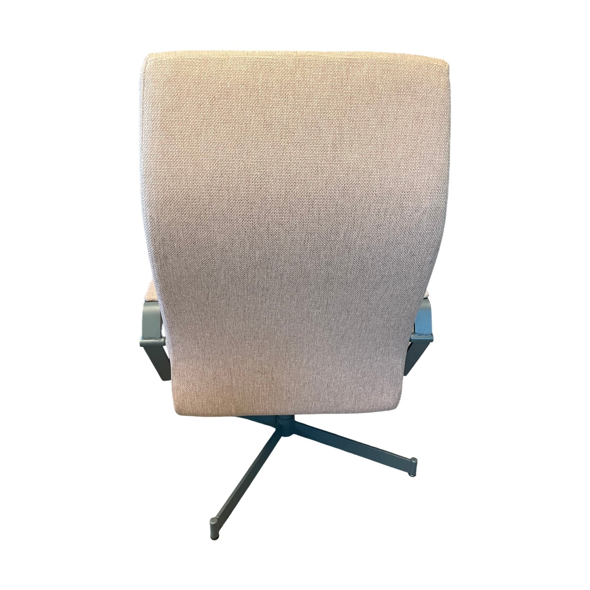 Lenestolen er i god stand, men viser noe slitasje med mindre flekker og falming på fargene på armlener og nakkepute. Helhetsinntrykket er fortsatt godt, og stolen er meget brukbar.