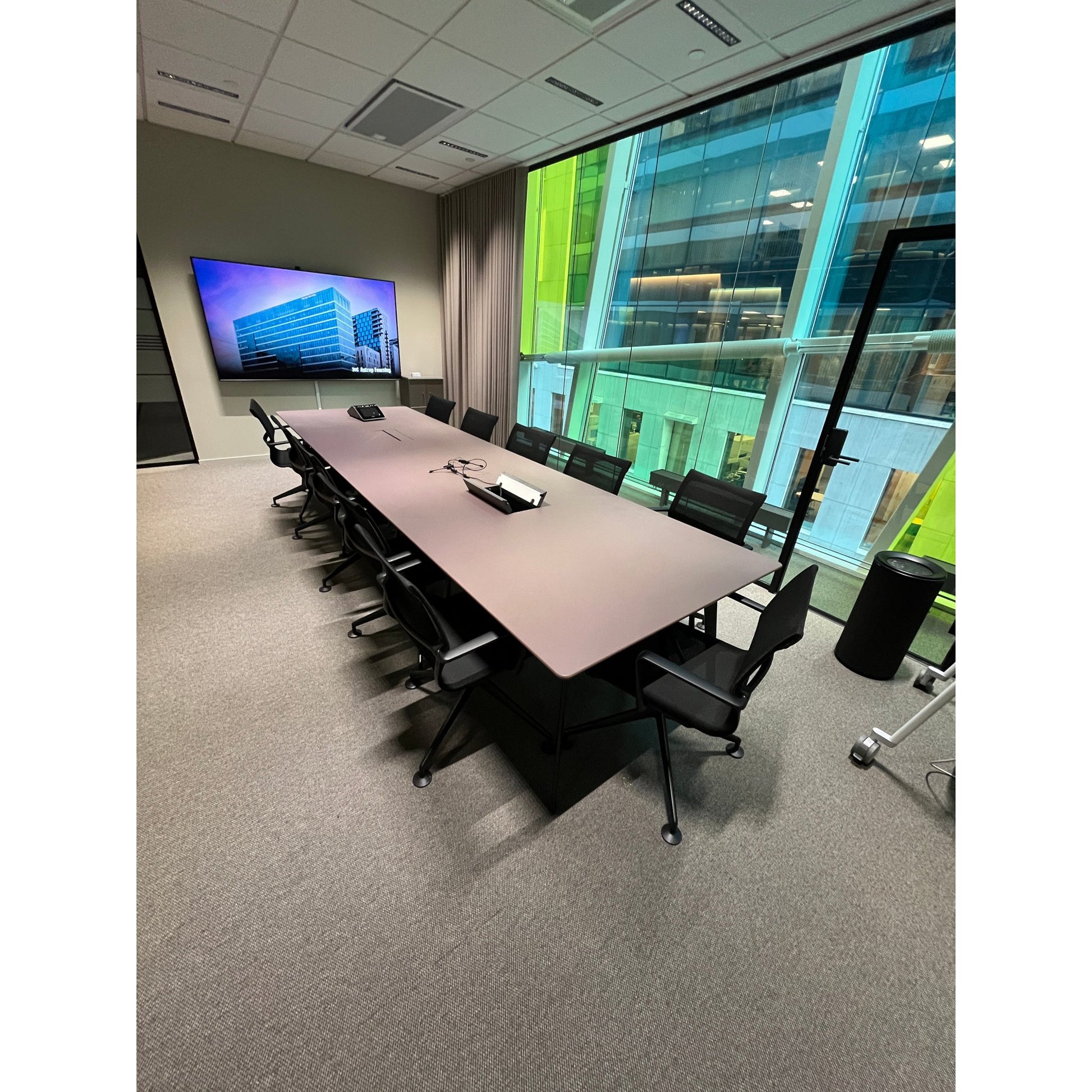 Moderne møteromsstol fra Vitra med et stilrent og funksjonelt design. Stolen har et komfortabelt sete og rygg laget av slitesterk mesh i svart, som gir god ventilasjon. Den enkle og elegante utformingen gjør den velegnet for både møterom og kontorlandskap, og den er utstyrt med solide armlener for ekstra støtte. Stolen er perfekt for lange møter takket være sin ergonomiske design.