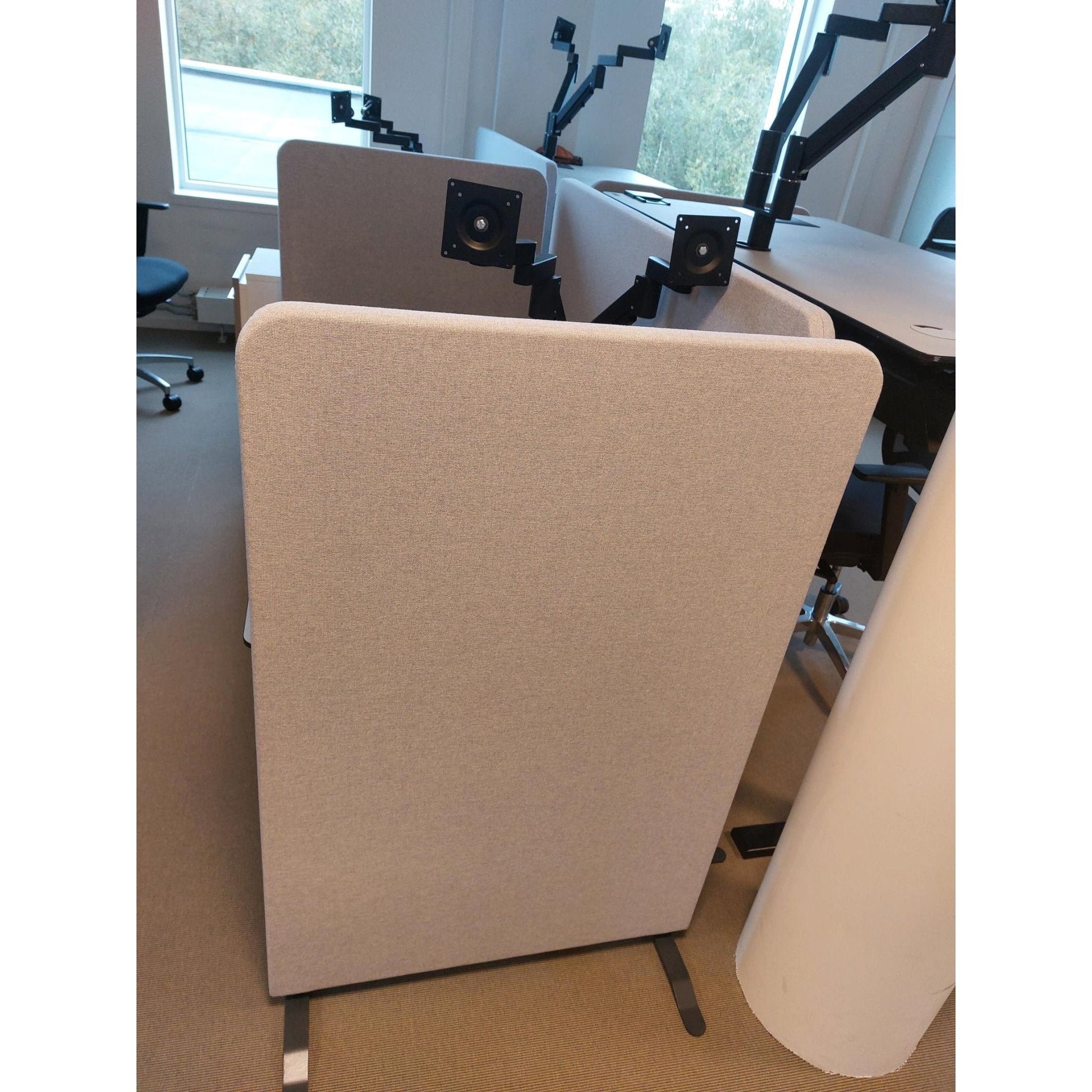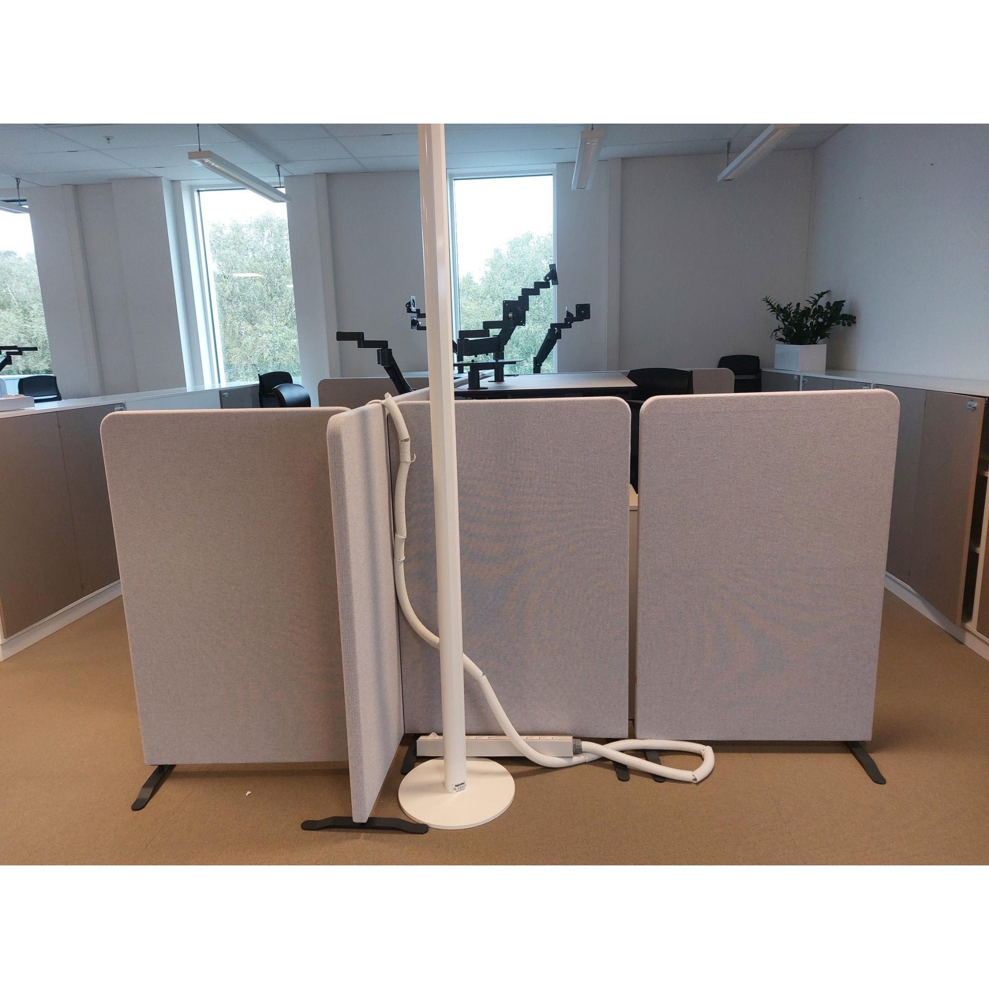 Moderne gulvstående skillevegg fra Scan Sørlie som måler 80 cm i bredden og 125 cm i høyden. Skilleveggen har en elegant grå farge og en stilren design som passer perfekt til kontorlandskap. Den er ideell for å skape private arbeidsplasser eller for å dempe akustikk i åpne kontorarealer, samtidig som den opprettholder en lys og åpen følelse i lokalet.