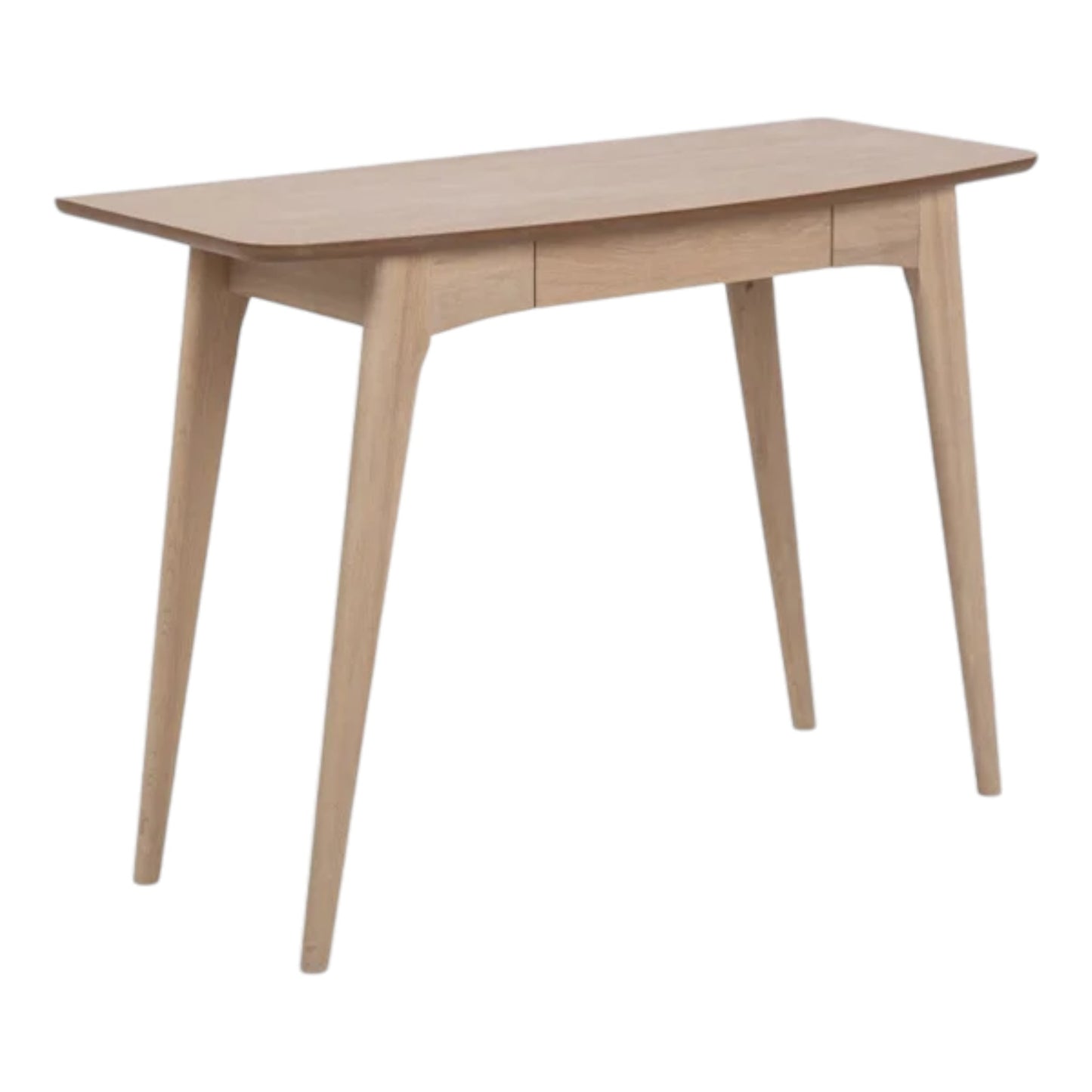 Woodstock skrivebord er et lite og nett skrivebord fra Woodstock-serien til A-Møbler. Bordet har en innebygget skuff med høye innvendige kanter. Bordplaten har en elegant buet form med en lett profilering på undersiden som understreker den skandinaviske stilen. Et perfekt valg for de som ønsker en liten arbeidsplass med et moderne snitt!