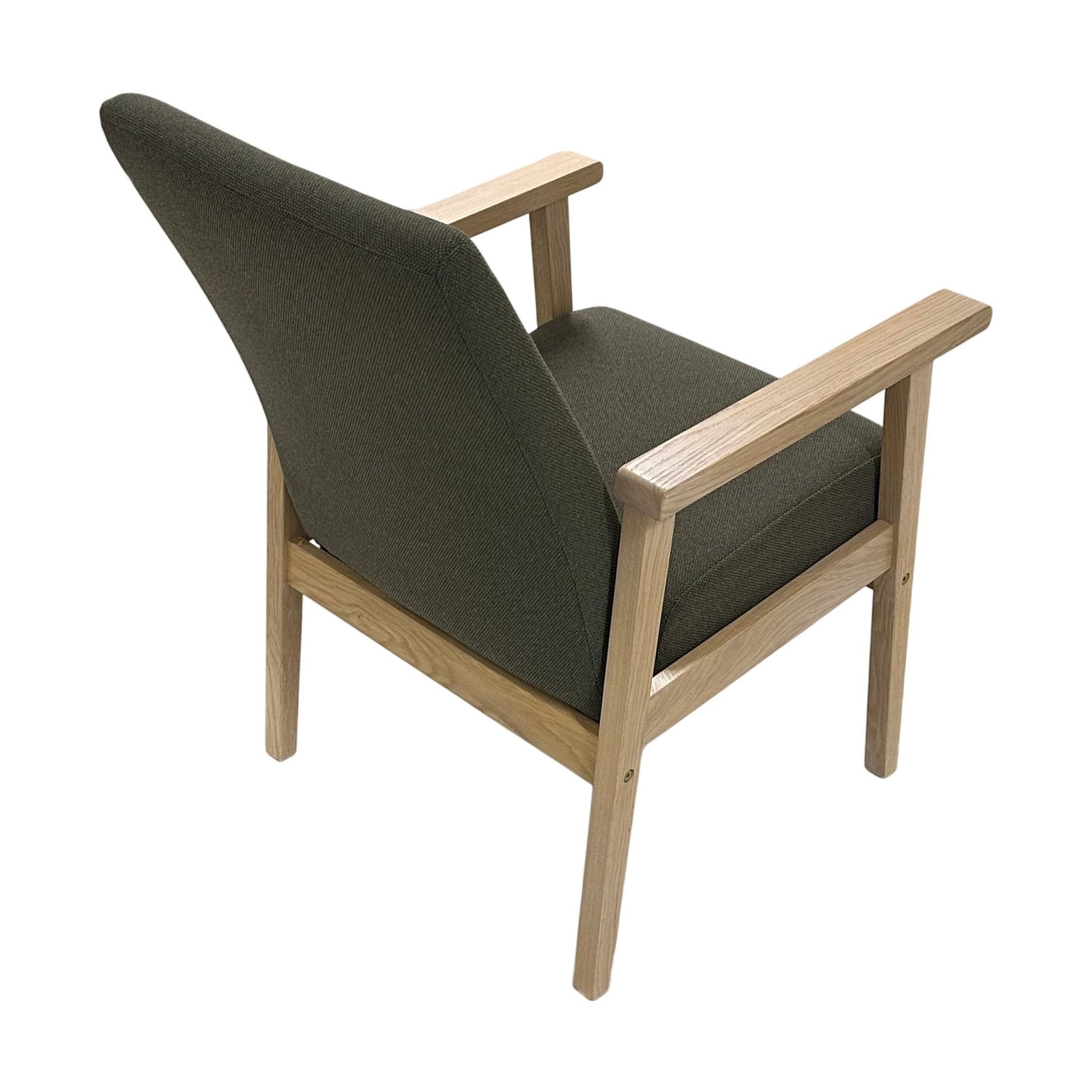 Zeta lenestol fra VAD med lav rygg. Denne lenestolen har et stilrent design som passer godt i både moderne og klassiske interiører. Den brune tekstilen gir et varmt og innbydende preg, og stolen er laget for å gi god komfort.