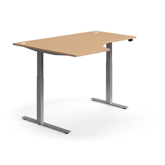 Hjørneskrivebord FLEXUS, hev/senk, L1600 B1200 mm, sølv, bøk fra AJ Produkter
